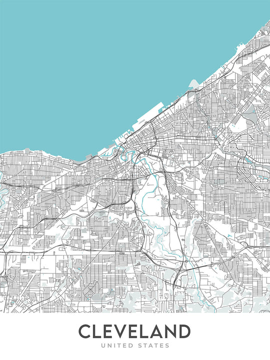 Este mapa es una forma única y elegante de añadir un toque de diseño moderno a su hogar u oficina. Es perfecto para cualquiera que ame Cleveland, Ohio, o para cualquiera que aprecie los mapas hermosos. La paleta de colores apagados y las líneas limpias hacen de este mapa una obra de arte versátil que complementará cualquier decoración.