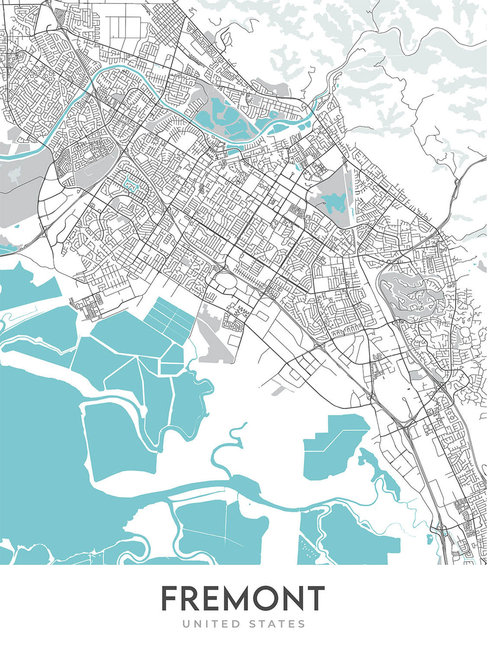 Unique Maps Co. ha creado un mapa verdaderamente especial de Fremont. Su cartografía única, diseño moderno y combinaciones de colores únicas hacen de este mapa una obra de arte. El mapa está impreso en papel de alta calidad y está disponible en varios tamaños. Es la manera perfecta de añadir un toque de estilo a cualquier hogar u oficina.