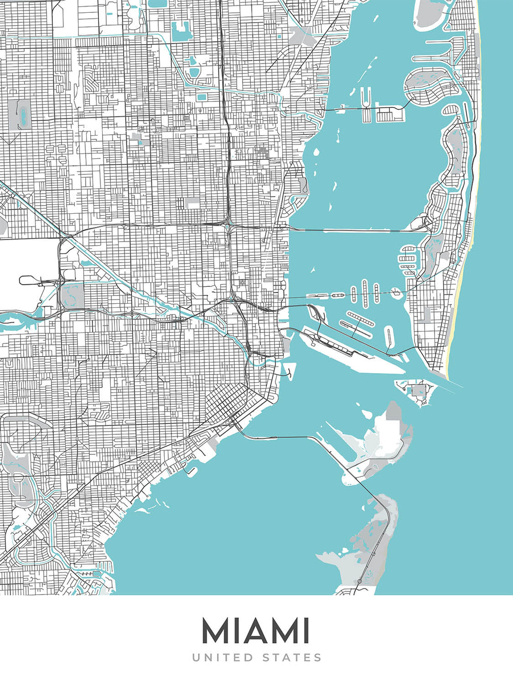 Este mapa es la manera perfecta de explorar todo lo que Miami tiene para ofrecer. Es una pieza de arte hermosa e informativa que añadirá un toque de estilo a cualquier hogar u oficina.