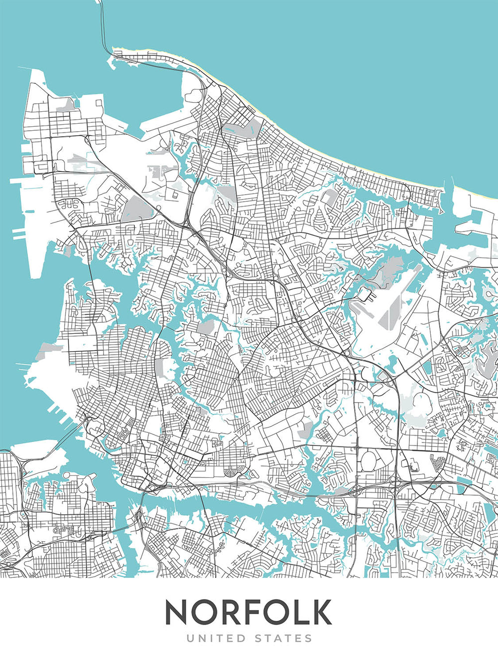 Este mapa es una celebración de Norfolk. Es una hermosa obra de arte que captura el carácter y el encanto únicos de la ciudad. Ya seas un local o un visitante, este mapa es un imprescindible para cualquiera que ame Norfolk.