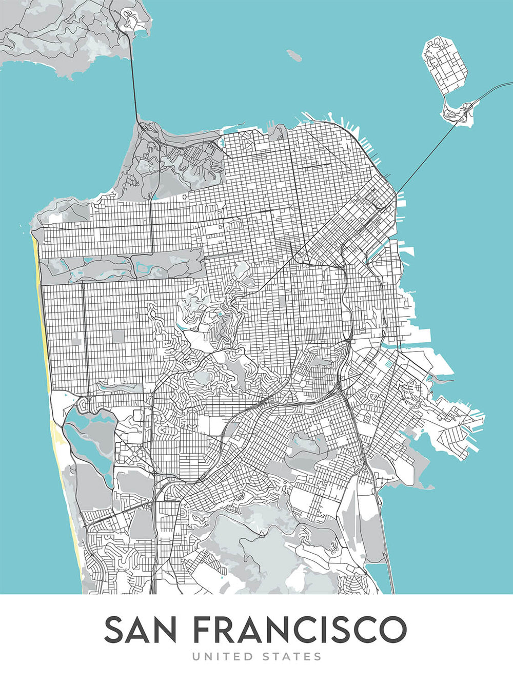 San Francisco es una ciudad en constante evolución y este mapa captura ese espíritu de innovación y creatividad. Es una ciudad que atrae a gente de todo el mundo y este mapa es un testimonio de su atractivo duradero. Si eres local, turista o simplemente un amante de los mapas hermosos, este mapa de San Francisco es imprescindible.
