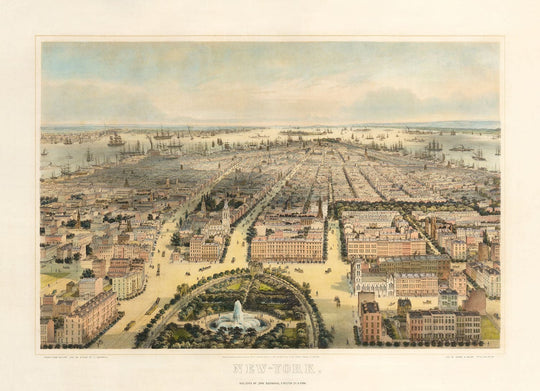 La isla de los gobernadores se puede ver en la distancia, y las islas Ellis y Liberty. Pero aún no hay una estatua de la libertad, tristemente, eso no vendría por unas pocas décadas más.