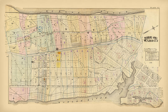 - Significado histórico o contexto: Este mapa ofrece información sobre el desarrollo urbano y la distribución de la propiedad en la ciudad de Nueva York a fines del siglo XIX. Es valioso para comprender el uso histórico del suelo y la planificación urbana en una de las ciudades más emblemáticas del mundo.