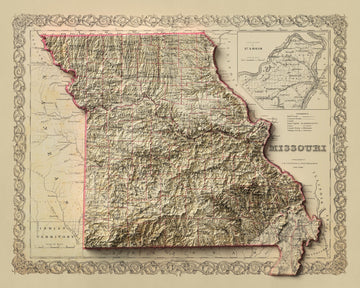 Sumérgete en el fascinante pasado de los Estados Unidos con este cautivador mapa antiguo de Missouri, meticulosamente elaborado por el estimado cartógrafo JH Colton en 1860. Esta pieza ofrece una visión única de un período formativo de la historia estadounidense, una época en la que la nación aún era en su infancia y el paisaje de Missouri era marcadamente diferente de lo que conocemos hoy. Es un testimonio extraordinario del incesante avance del tiempo, un recordatorio de lo lejos que hemos llegado y de cuánto ha cambiado en los últimos 150 años.