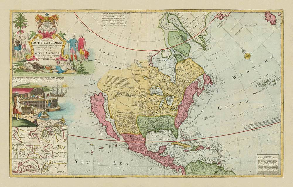 • Nombre del Mapa: "Al Muy Honorable John Lord Sommers... Este Mapa de América del Norte Según las Observaciones Más Nuevas y Exactas"