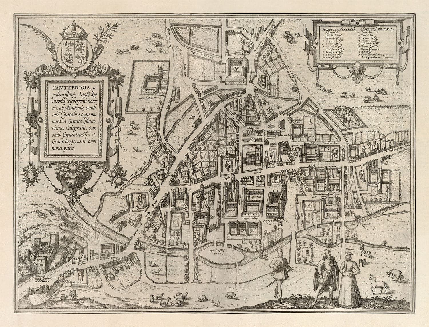 Old Map of Cambridge and University Colleges, 1575 by Georg Braun-Trinity, Kings, Queens, Clare