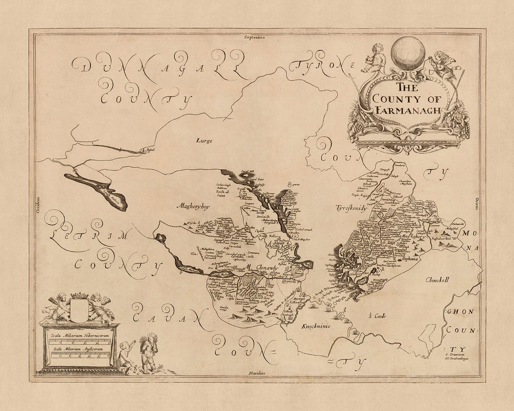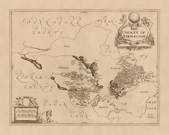 Mapa antiguo del condado de Fermanagh por Petty, 1685: Enniskillen, Castle Coole, Crom Estate, Florence Court, Lough Erne