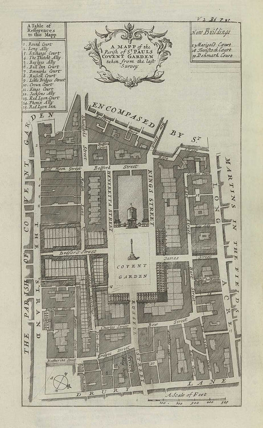 Esta maravillosa antigua mapa de la Parroquia de St Pauls Covent Garden fue publicada originalmente en 1720. Fue creada por John Strype y John Stow.