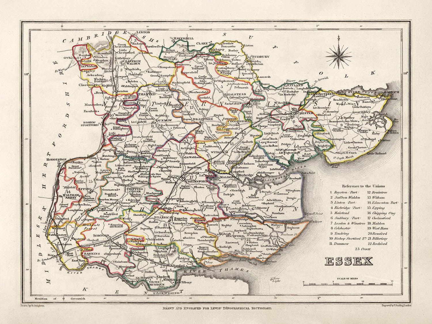 Esta maravillosa antigua mapa de Essex fue publicada originalmente en 1844. Fue creada por Samuel Lewis.