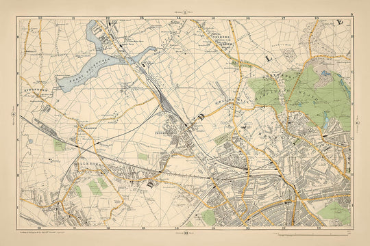 Mapa antiguo del norte de Londres, 1900: Kingsbury, Hampstead Heath, Golders Green, Brent, Belsize, Willesden