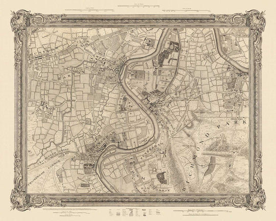 Publicado hace casi 300 años por el maestro cartógrafo John Rocque, este es el primer mapa detallado de West London. Fue publicado originalmente en 1746, tras una encuesta altamente precisa de Londres y sus suburbios que comenzó en 1740. Es un hermoso mapa antiguo, muy detallado y extremadamente raro.