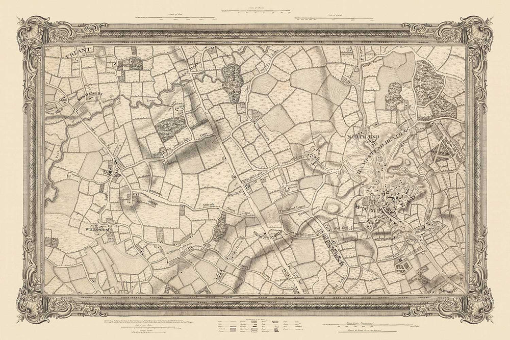 Publicado hace casi 300 años por el maestro cartógrafo John Rocque, este es el primer mapa detallado del Noroeste de Londres y Londres Occidental. Fue publicado originalmente en 1746, tras una encuesta altamente precisa de Londres y sus suburbios que comenzó en 1740. Es un hermoso mapa antiguo, altamente detallado y extremadamente raro.