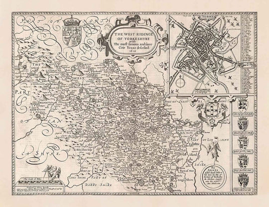 En la esquina superior derecha hay un grabado detallado de York, que entonces (y aún) era la capital de este antiguo condado.