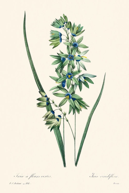 La meticulosa atención a los detalles y el hábil uso del color de Redouté en esta ilustración resaltan la elegancia y la sofisticación del arte botánico victoriano. El lirio africano (Ixia africana) representado aquí muestra su capacidad para capturar temas botánicos con precisión científica y estilo artístico. Esta cautivadora representación no es solo una obra de arte; es una celebración de la belleza de la naturaleza y del genio de Redouté.