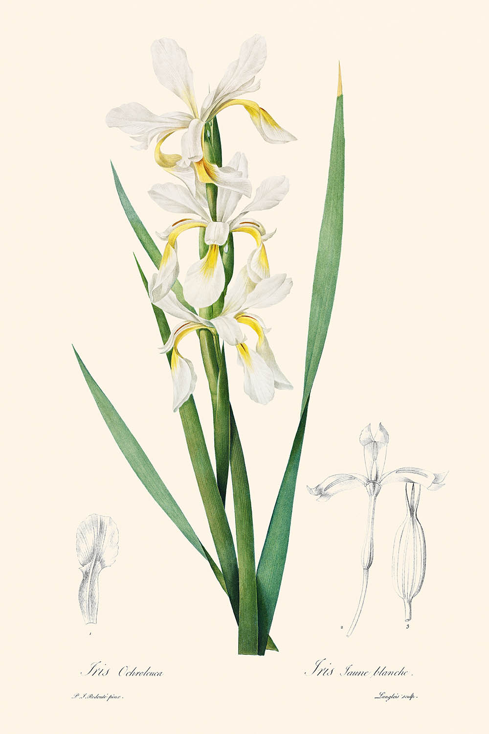 "Iris de Banda Dorada" se destaca no solo por su precisión científica, sino también por su elegancia artística. El uso de colores suaves y armoniosos y líneas precisas de Redouté resalta la intrincada belleza del iris, convirtiéndolo en una pieza cautivadora para cualquier amante del arte. Las sutiles gradaciones de amarillo y blanco contra el rico fondo verde destacan la belleza natural de la flor, haciendo de esta una pieza atemporal para cualquier decoración del hogar u oficina.
