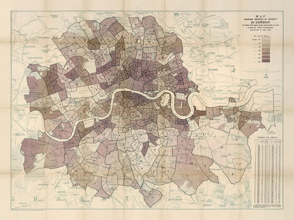 Si buscas mapas de pobreza más detallados, también tengo las 12 hojas individuales que Charles Booth publicó. Y también puedo crear mapas de pobreza gigantes y personalizados de todo Londres.