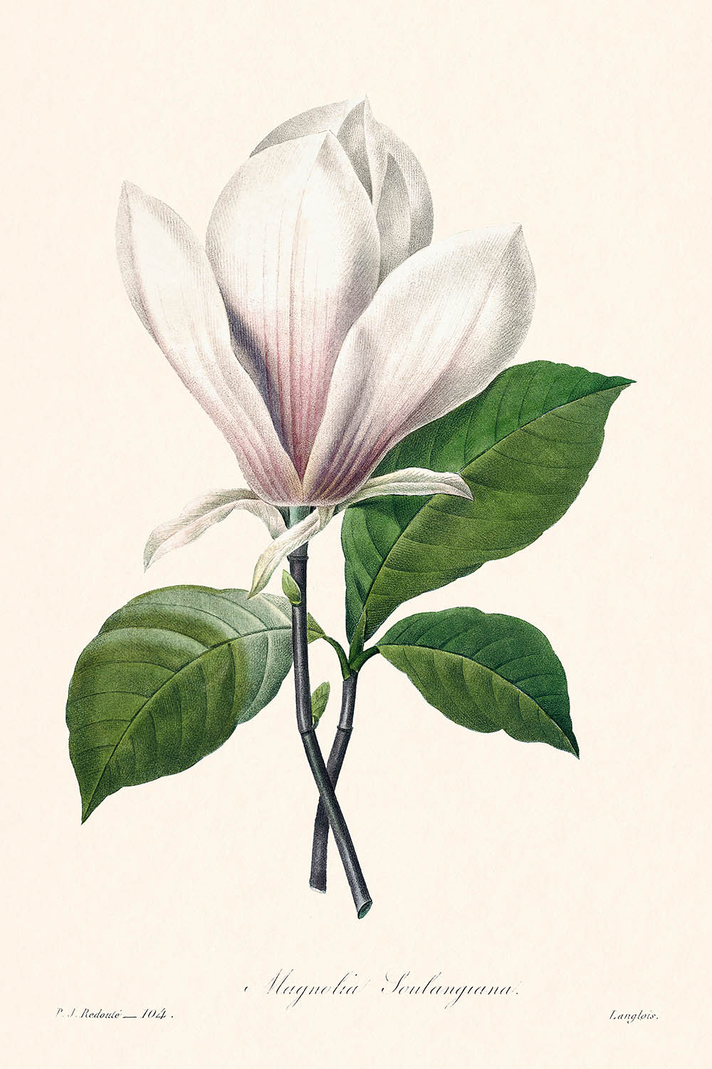 Ilustración botánica de Magnolia Soulangiana por Pierre-Joseph Redouté, 1827