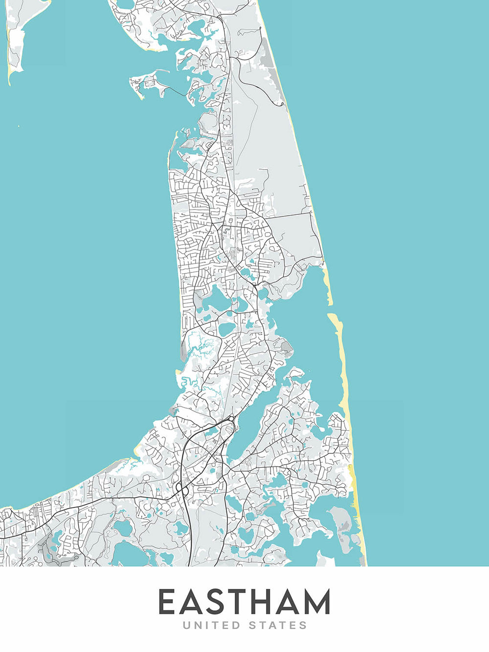 Esta creación original de The Unique Maps Co. es un tema de conversación que será un complemento elegante para cualquier hogar u oficina. La paleta de colores apagados y las líneas limpias de este mapa complementarán cualquier esquema de diseño de interiores, y el papel y la impresión de alta calidad garantizan que este mapa durará muchos años. Este mapa es perfecto para cualquiera que ame Eastham o para cualquiera que aprecie la cartografía hermosa y moderna.
