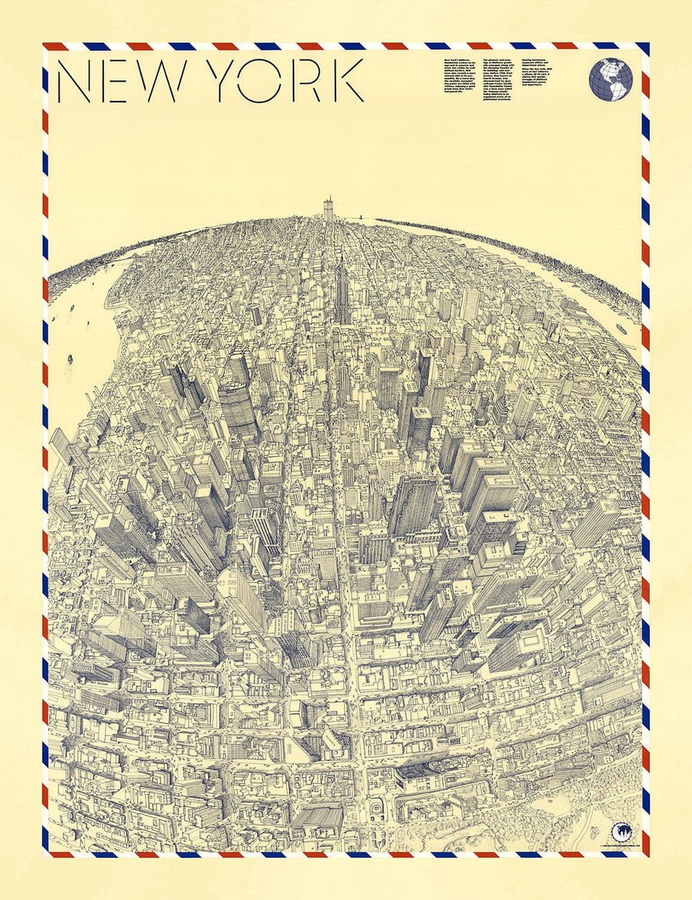 También tengo un mapa de vista de pájaros similar de Nueva York, pero desde 1849, ¡si estás buscando algo un poco más histórico!