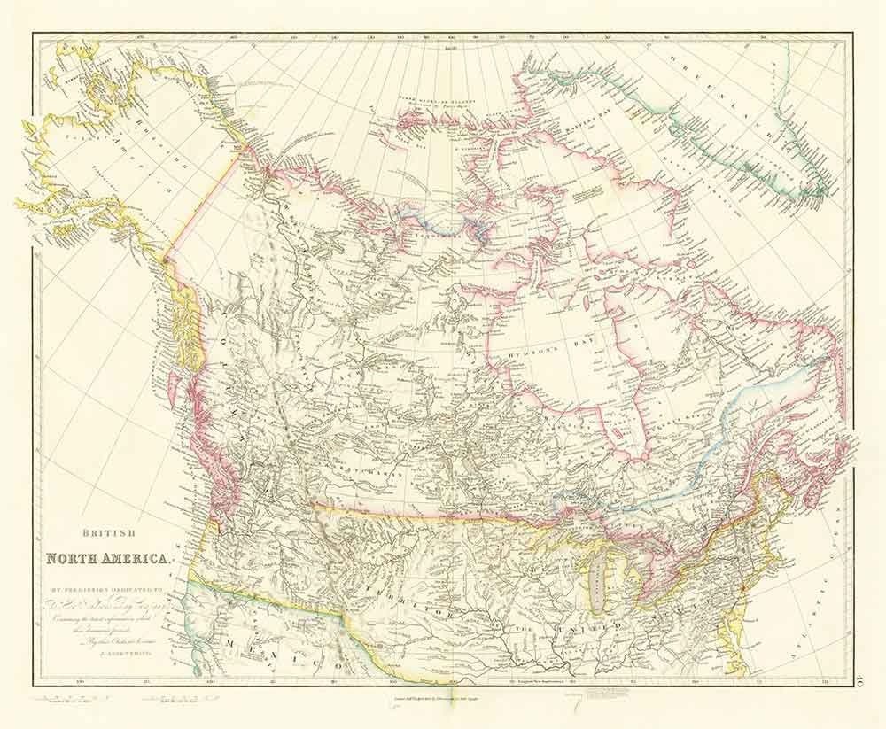 Antiguo mapa de Canadá, 1840 por Arrowsmith: Estados Unidos, América Rusa, Alto y Bajo Canadá, Norteamérica Británica, Pueblos Nativos e Indígenas