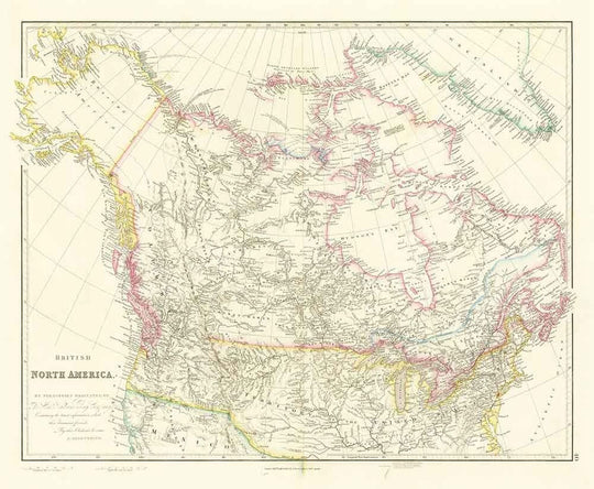 Un fascinante mapa antiguo de América del Norte Británica de 1840, centrado en Canadá pero con grandes partes del norte de EE. UU. y Alaska (¡entonces llamada América Rusa!) también. Alaska eventualmente sería vendida a EE. UU. en 1867 por solo 7.2 millones de dólares.