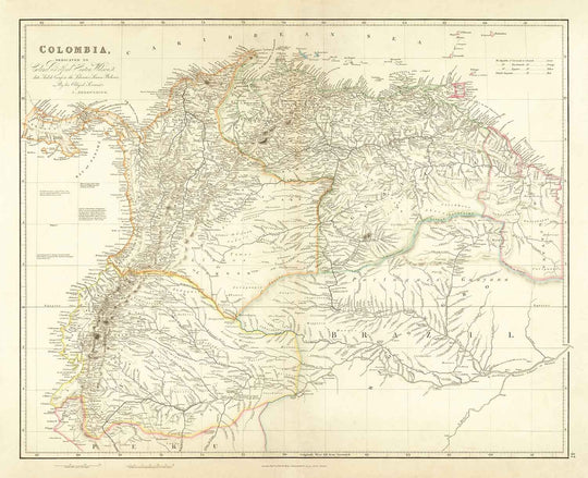 Un hermoso mapa de Colombia y Gran Colombia, publicado originalmente en 1834 por probablemente el cartógrafo más buscado de mediados del siglo XIX, John Arrowsmith.