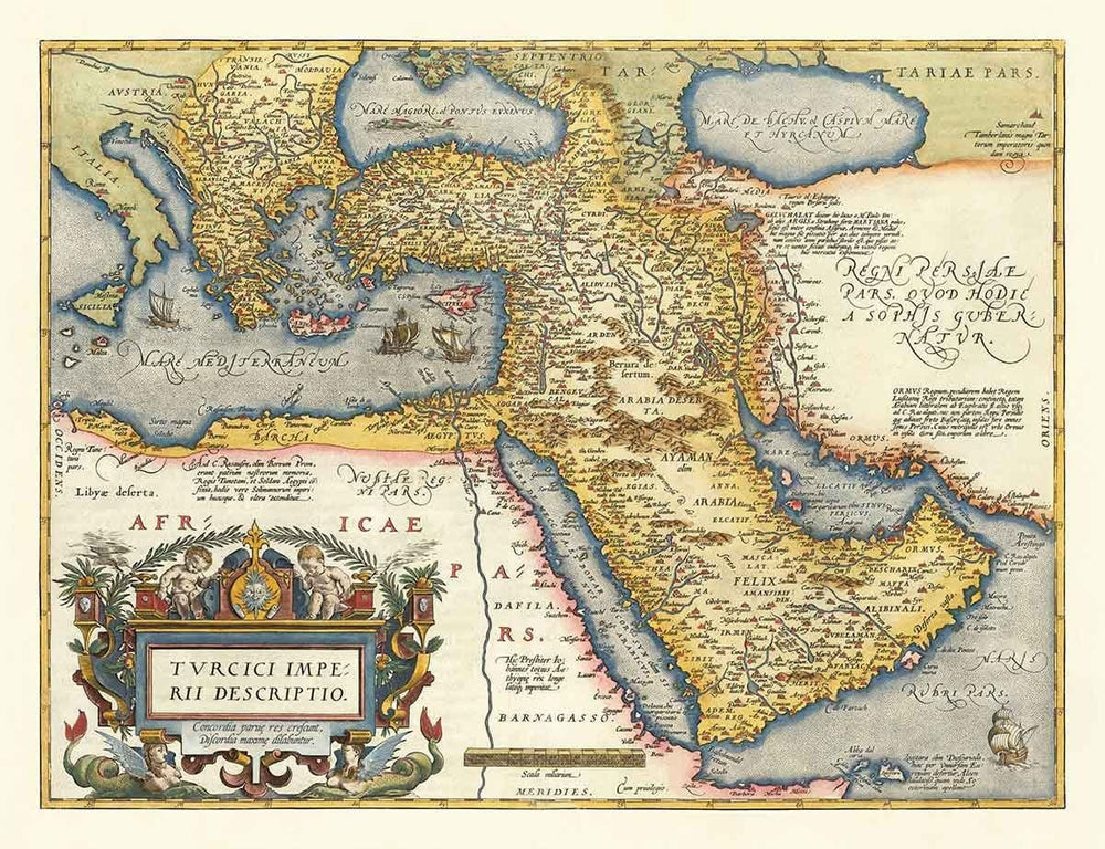 Antiguo mapa del Imperio Otomano, 1584 de Ortelius: Turquía, Arabia Saudí, Oriente Medio, Irán, Israel, Grecia, Mar Rojo, África