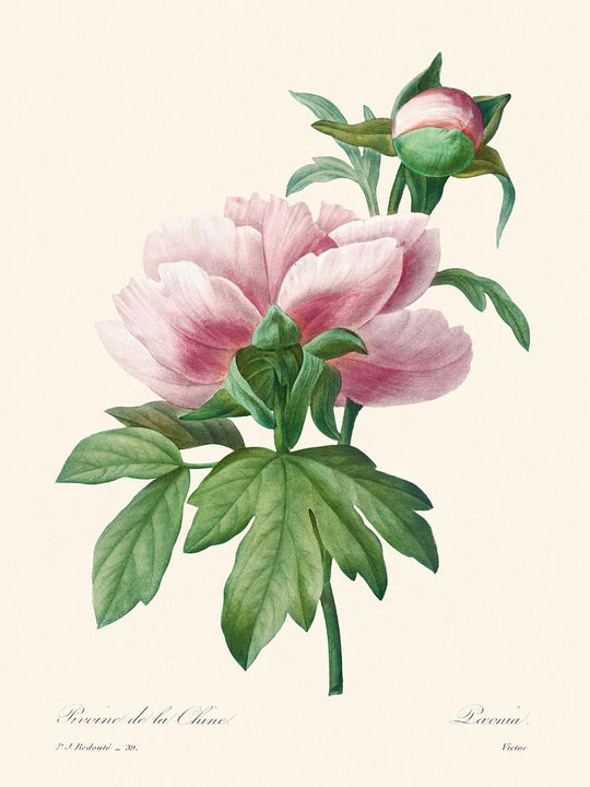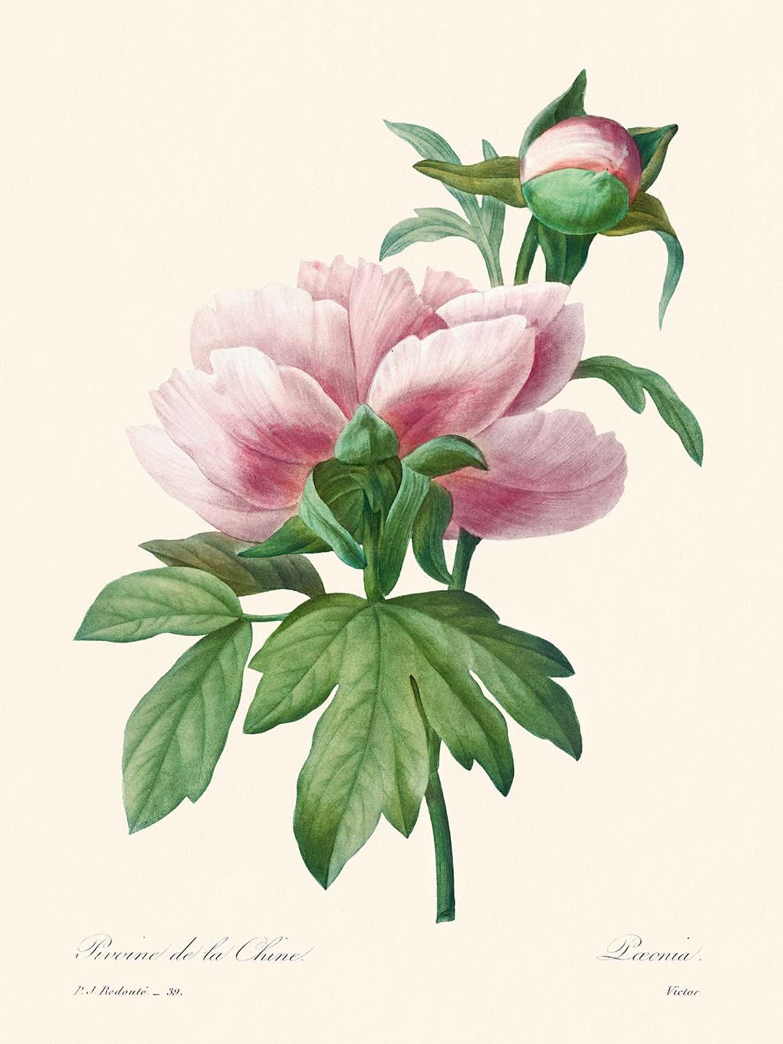 Peonía rosa de Pierre-Joseph Redouté, 1802