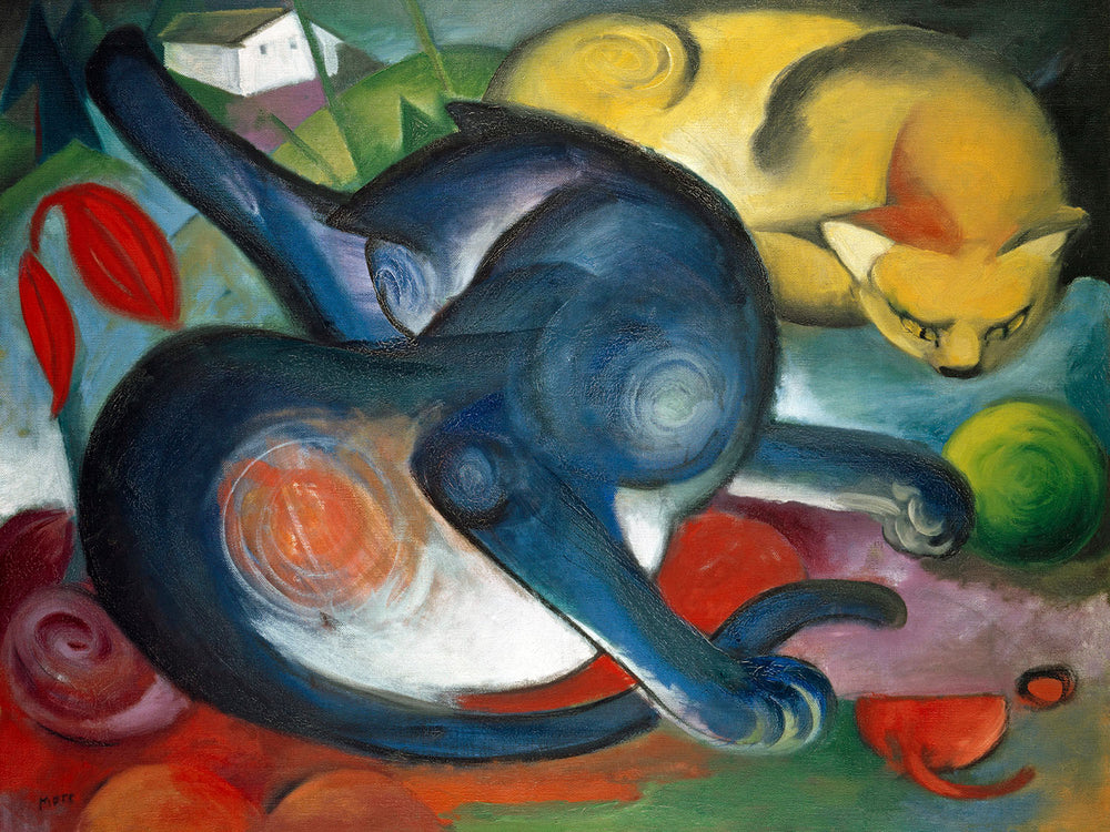Dos gatos, azul y amarillo de Franz Marc, 1912