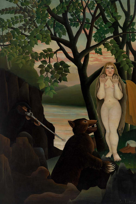 El atractivo de "Sorpresa desagradable" reside en su atmósfera misteriosa y en el uso vibrante del color, que crea una narrativa que invita a los espectadores a explorar sus complejidades. Esta obra de arte es particularmente notable por su equilibrio entre realidad y fantasía, un testimonio de la habilidad de Rousseau para capturar las maravillas inesperadas de la mente.