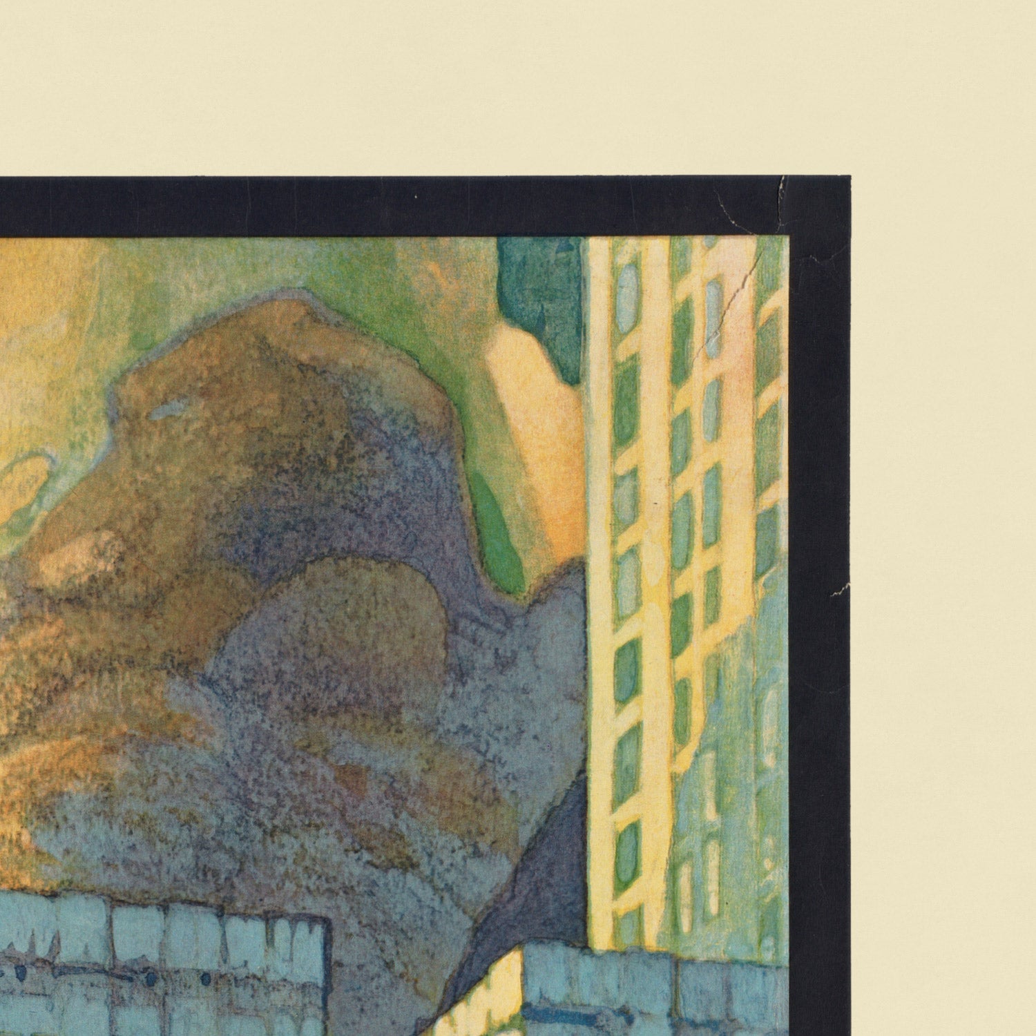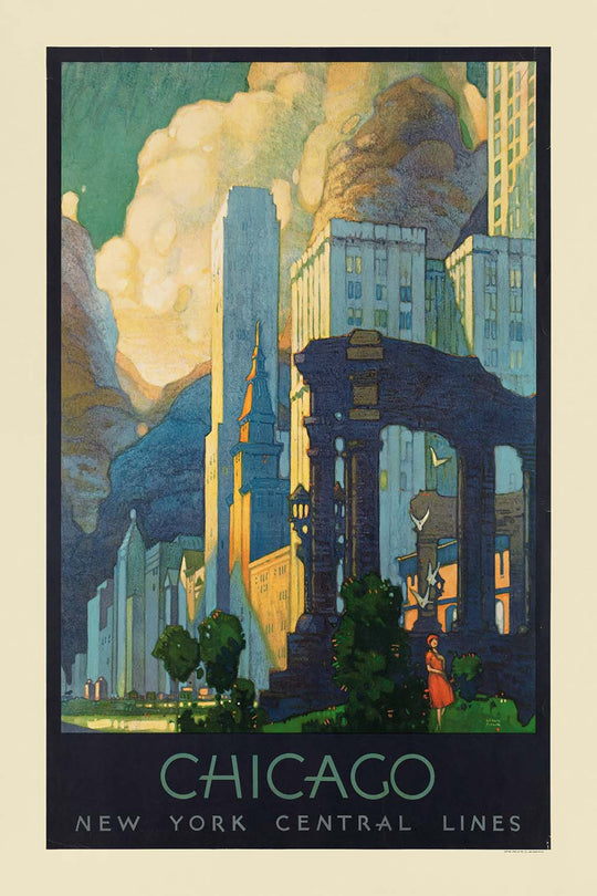 Chicago is an ideal subject for Ragan’s visual vocabulary. As the nation’s great crossroads—linked by rail lines, waterways, and air routes—the city captured the imagination of travelers seeking modernity and momentum. In this composition, you can feel that metropolitan energy: the city’s vertical thrust and waterfront setting are distilled into crisp, architectural shapes that communicate ambition and movement without clutter. The effect is both romantic and resolutely modern, a love letter to the skyline and the lake that frame it.