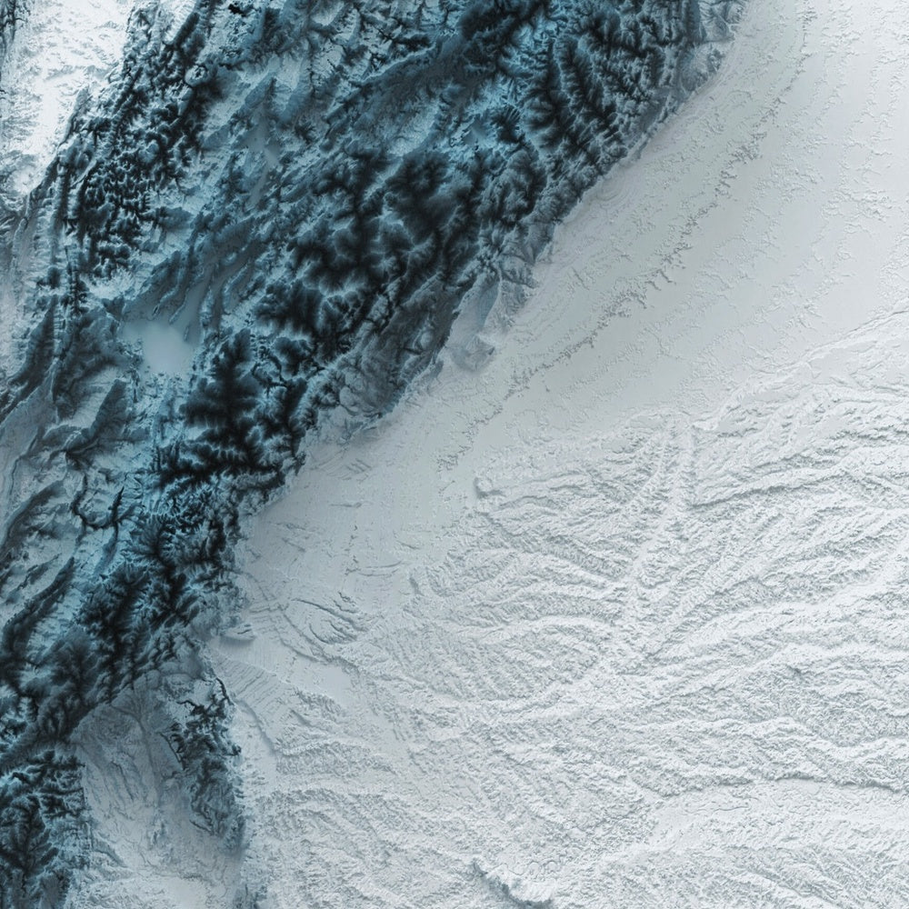 Our shaded relief prints use ultra high resolution topographic data and a secret 3D rendering process to create the illusion of raised terrain — like the mountains are about to lift right off the page. No labels, no borders, no distractions. Just the raw shape of the land, brought to life in a clean, modern style.
