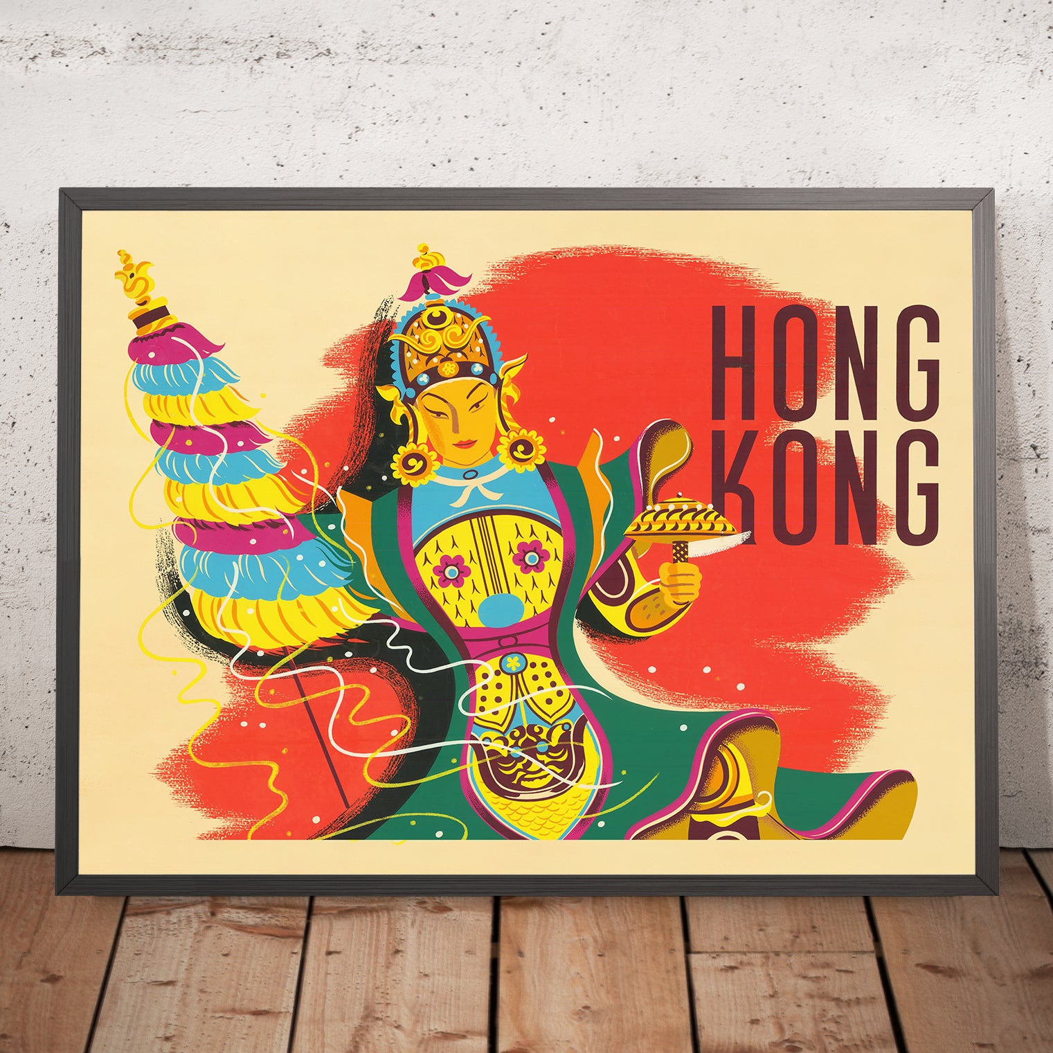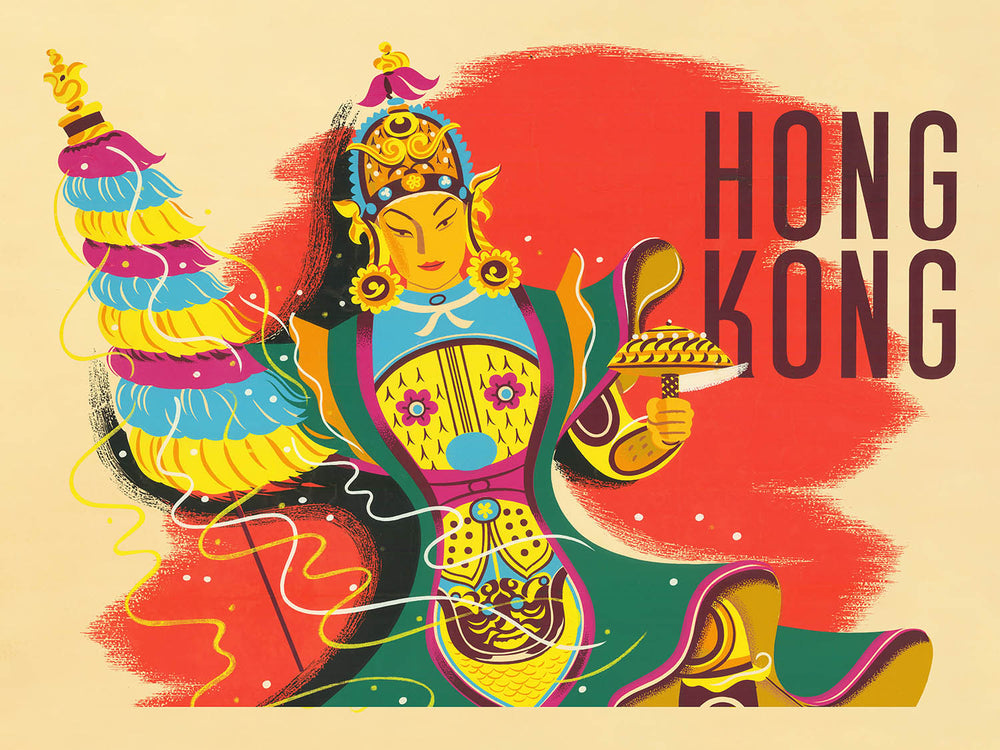 While the original artist is uncredited, posters of this era in Hong Kong were often designed by skilled in‑house illustrators and lithographers who straddled two visual worlds: the refined line, pattern, and symbolism of Chinese art and the bold, simplified shapes of Western poster design. Their work formed the visual language of international travel in the 1950s, appearing in shipping offices, department stores, and travel bureaus across the region.