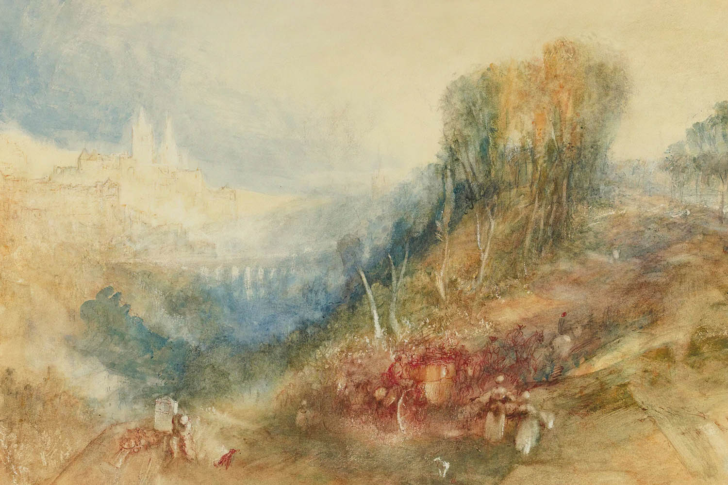 La notoriedad de Turner radica en su capacidad para abrazar tanto lo sereno como lo sublime dentro de los paisajes naturales. "Lausanne desde el Oeste" es un testimonio de su habilidad, mostrando su uso característico de la luz y colores vibrantes. Dominando la pieza hay un exquisito juego de tonos amarillos, azules y rojos, combinados armoniosamente para evocar la belleza natural y la tranquilidad de la escena. Esta obra de arte se erige como una hermosa ilustración del objetivo de Turner de capturar la atmósfera y emoción intangibles de un lugar en lugar de solo su geografía física.