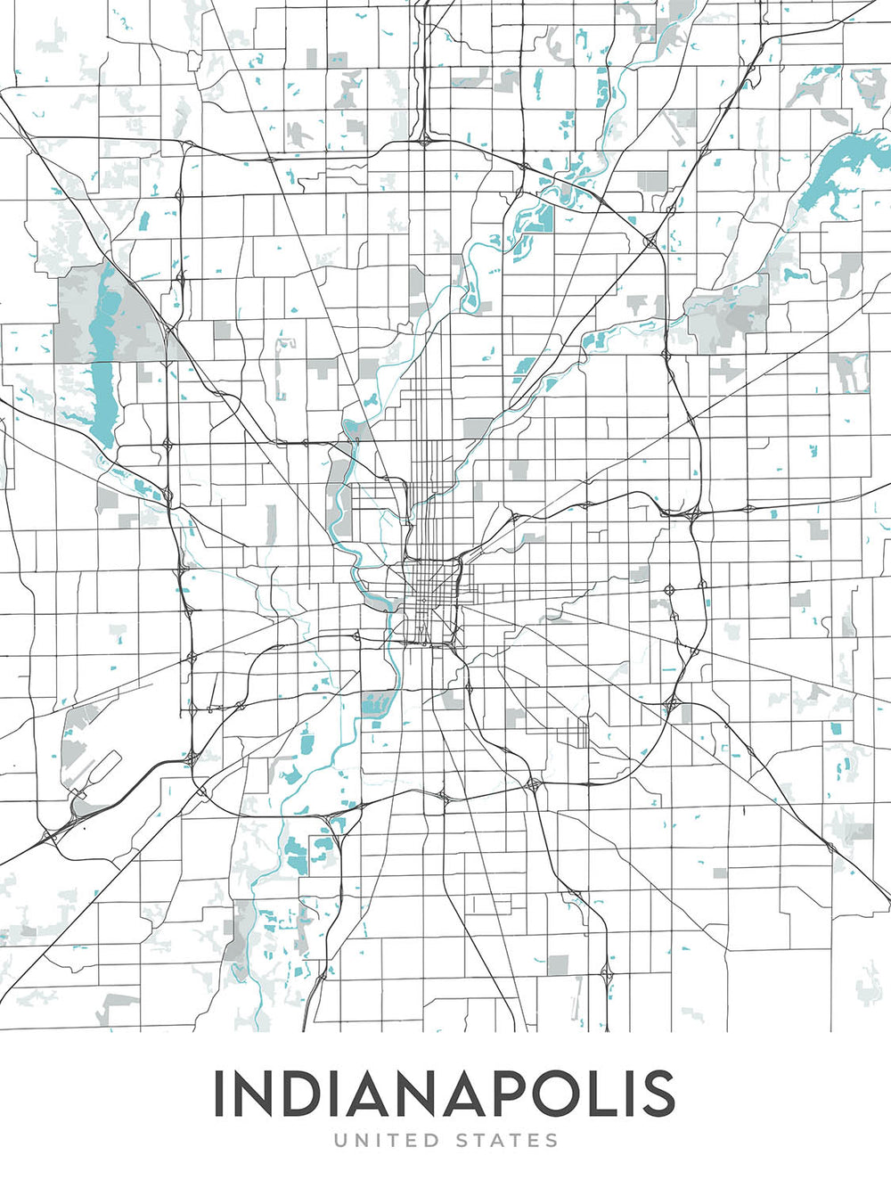 Esta creación original de The Unique Maps Co. presenta una cartografía única, un diseño moderno y una llamativa paleta de colores. El mapa es una hermosa obra de arte que complementará la decoración de cualquier hogar u oficina. Es imprescindible para cualquiera que ame Indianápolis o esté interesado en la cartografía moderna.