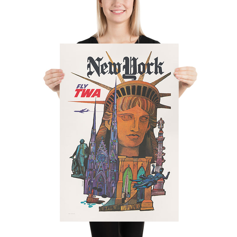 New York Travel Poster, Fly TWA by David Klein, 1970