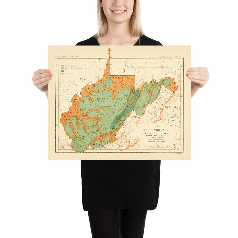 Rare Old Forestry Map of West Virginia by Sargent, 1882: Charleston, Huntington, Ohio River, Alleghenies, Spruce Knob