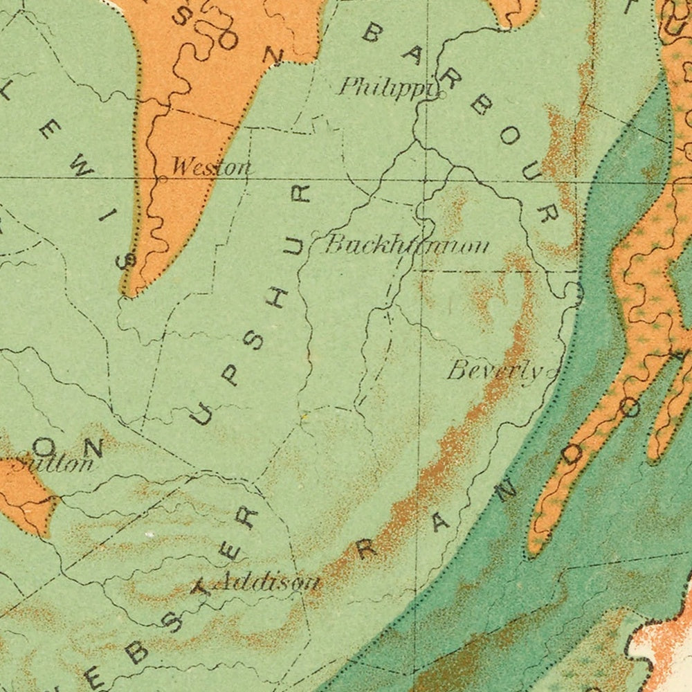 Charles Sprague Sargent—pioneering dendrologist and early advocate for conservation—used the Tenth Census to quantify America’s forests with unprecedented rigor, and this map distills that program’s West Virginian evidence. His method translates field reports and local knowledge into broad, intelligible categories that balance accuracy with cartographic economy. The collaboration with Julius Bien, the era’s master of color lithography for federal surveys, yields striking clarity: crisp lines, even color layers, and legible symbology that reward both study and display. As policy tool and scientific diagram, it occupied the practical frontier where statistics met landscape, guiding decisions in logging, transportation, and stewardship while sharpening public understanding of a fragile resource.