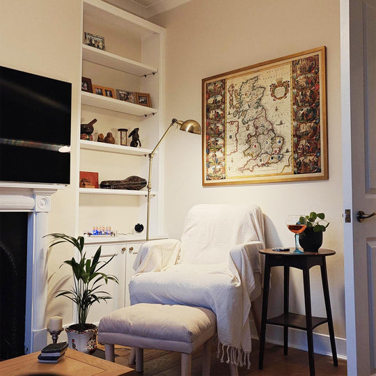 Obtengo mapas originales y raros de bibliotecas, casas de subastas y colecciones privadas de todo el mundo, los restauro en mi taller de Londres y luego uso tintas e impresoras giclée especializadas para crear hermosos mapas que lucen incluso mejor que el original.