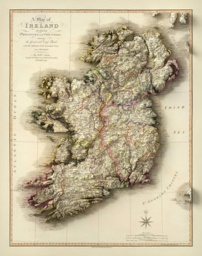 Este es uno de los mapas antiguos más finos y raros de Irlanda, que muestra todos los condados y provincias originales.
