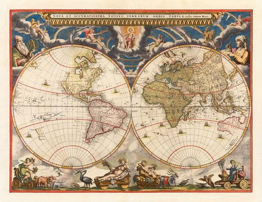 Mapa del Atlas del Viejo Mundo, 1662 de Joan Blaeu: Arte de la pared vintage a mano rara