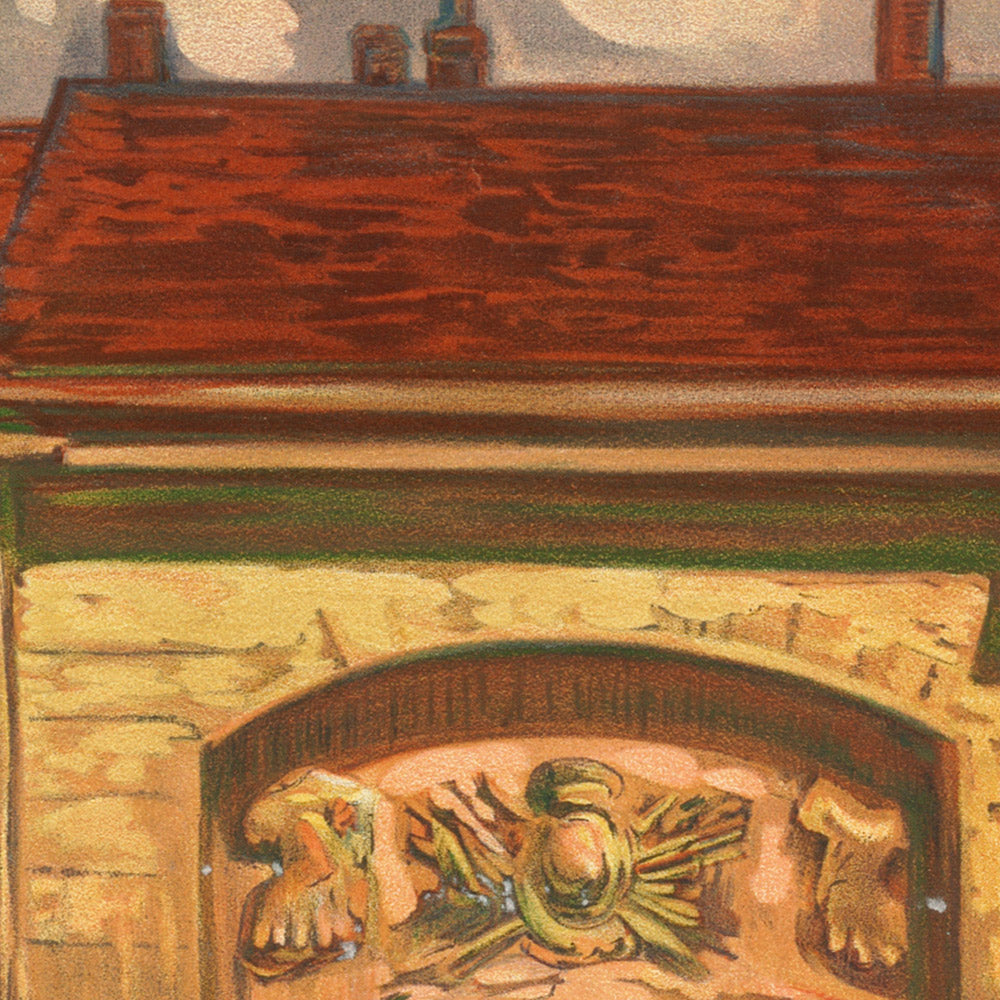 La Porte de France a Phalsbourg by J. de la Nèziére invites the viewer through the storied gateway of Phalsbourg in northeastern France, rendered in the lyrical curves and organic elegance of Art Nouveau. This antique travel poster captures the town’s emblematic arch with a welcoming grandeur: rounded stonework, flowing foliage, and a mischievous cherubic figure that lends a playful, human touch. It is a celebration of place and passage—an image that once beckoned travelers toward the Vosges foothills and the pleasures of discovery.