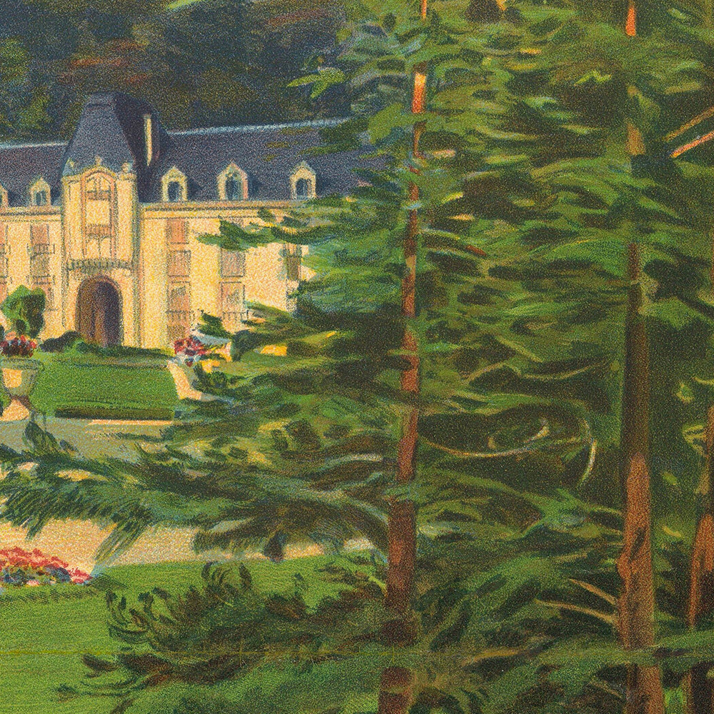 About the place: Vittel rose to renown for its mineral springs and therapeutic “eaux,” drawing visitors to its parkland promenades and grand hôtels. The Chemins de Fer de l’Est made these pleasures accessible, transforming a journey into part of the experience and helping to define the era’s culture of healthful leisure. For travelers who have wandered the Vosges or sipped Vittel’s waters, the poster is a graceful reminder of that world of belle époque elegance and fresh-air afternoons. Indeed, the man in the poster is drinking a glass of Vittel water.