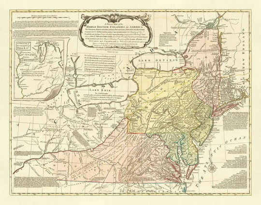 Publié en 1755 par Lewis Evans et John Bowles, ceci est peut-être la plus belle et la plus rare carte des colonies britanniques (et européennes) en Amérique du Nord.