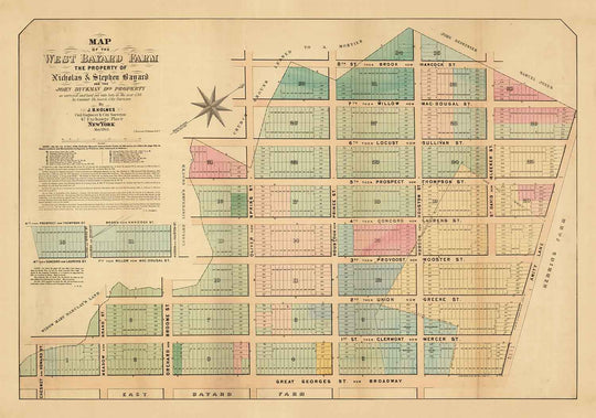 Cette carte couvre ce qui est maintenant connu sous le nom de SoHo (ou au sud de Houston). Mais, si cela ne suffisait pas, la carte montre également les terres agricoles sur lesquelles SoHo a été construit.Il est un peu difficile de le croire aujourd'hui, mais au début du 19ème siècle, la plupart de Manhattan était encore des terres agricoles. Ici, la carte montre que SoHo était autrefois la ferme de West Bayard, la propriété de Nicholas & Stephen Bayard.