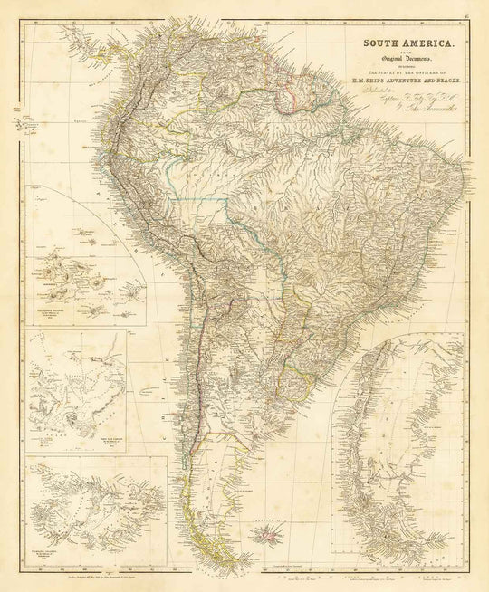 Une magnifique carte de l'Amérique du Sud, publiée à l'origine en 1839 par probablement le cartographe le plus recherché du milieu du 19ème siècle, John Arrowsmith.