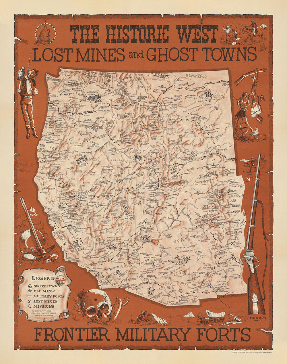 Cette merveilleuse vieille carte de l'Ouest américain a été publiée à l'origine en 1968. Elle a été créée par Andy Dagosta.
