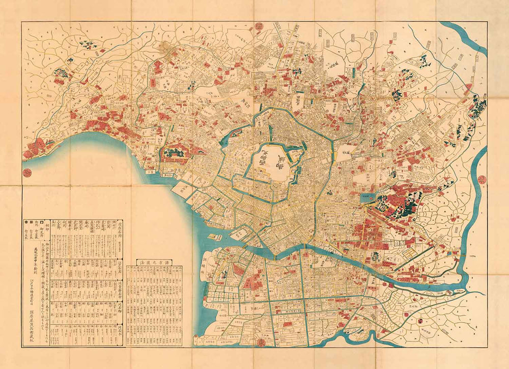 Tokyo était alors connue sous le nom d'Edo. Lorsque cette carte a été publiée, le Japon était dirigé par le shogunat Tokugawa, le gouvernement militaire basé à Edo. Cependant, peu après la publication de cette carte, l'ère Edo a pris fin en raison de l'alliance de deux puissants clans anti-Tokugawa pour renverser le shogunat.