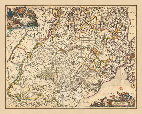 La carte de Visscher offre un aperçu fascinant du paysage historique et politique de l'époque. Il détaille les différentes régions et divisions politiques au sein du domaine d'Utrecht, offrant un aperçu de la dynamique complexe de l'époque. Cela en fait non seulement une pièce décorative, mais aussi un document historique précieux qui peut offrir une compréhension plus profonde du passé.