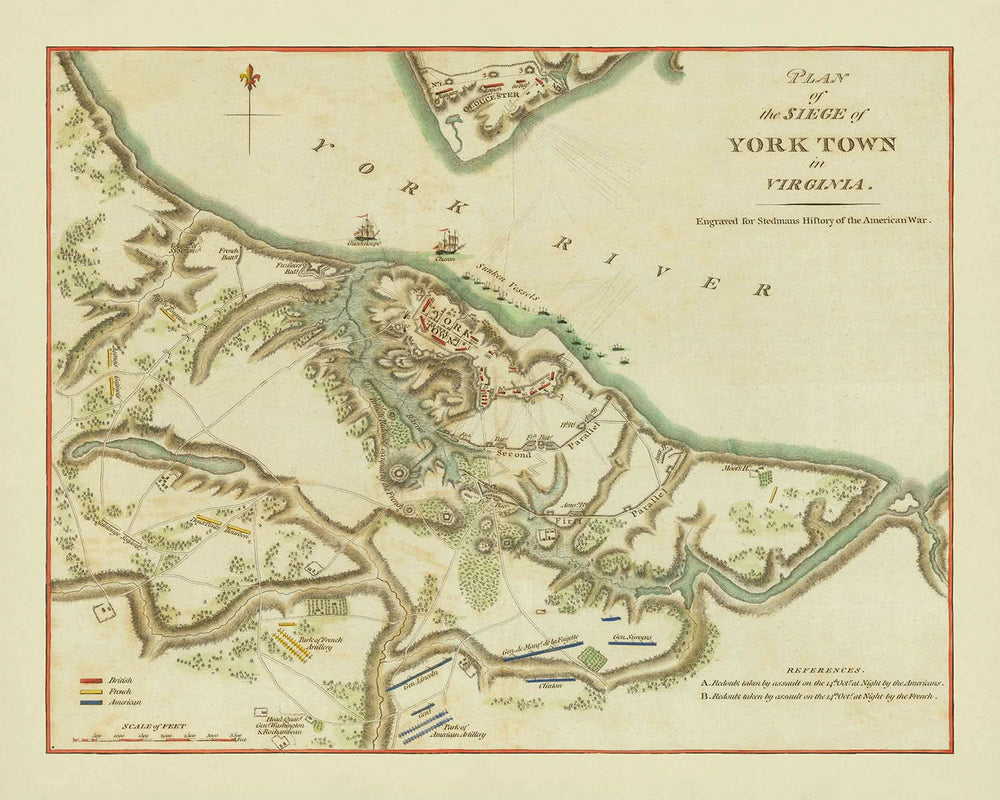 D'un point de vue historique, cette carte est un document crucial de la lutte américaine pour l'indépendance. Elle capture le moment où la tendance s'est inversée de manière irréversible contre les ambitions coloniales britanniques, marquant le début de la fin de la guerre. Le siège de Yorktown est célébré comme un symbole de coopération internationale, les forces françaises ayant joué un rôle essentiel dans la victoire américaine. Cette carte n'est donc pas seulement une réussite cartographique, mais une célébration d'un tournant dans l'histoire mondiale.